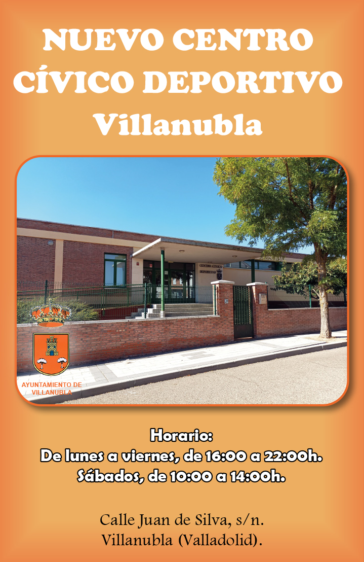 Centros Deportivos Horario: De lunes a viernes, de 16:00 a 22:00h. Sábados, de 10:00 a 14:00h. Dirección Calle Juan de Silva, s/n.Villanubla Valladolid