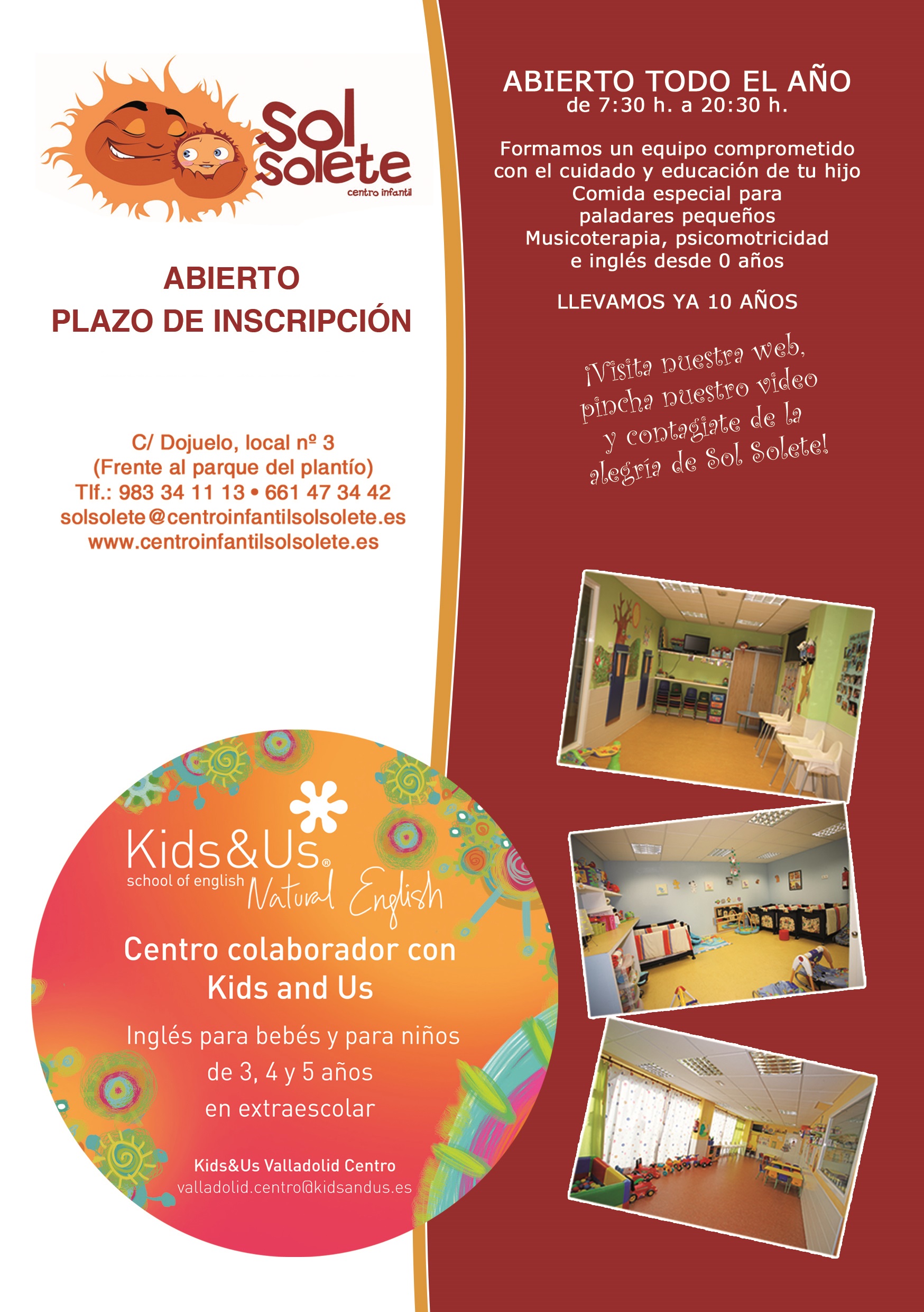 "Sol Solete, es un Centro infantil familiar dónde los niñ@s pasan los tres primeros años de sus vidas, dónde aprenden, se divierten y reciben mucho cariño.
